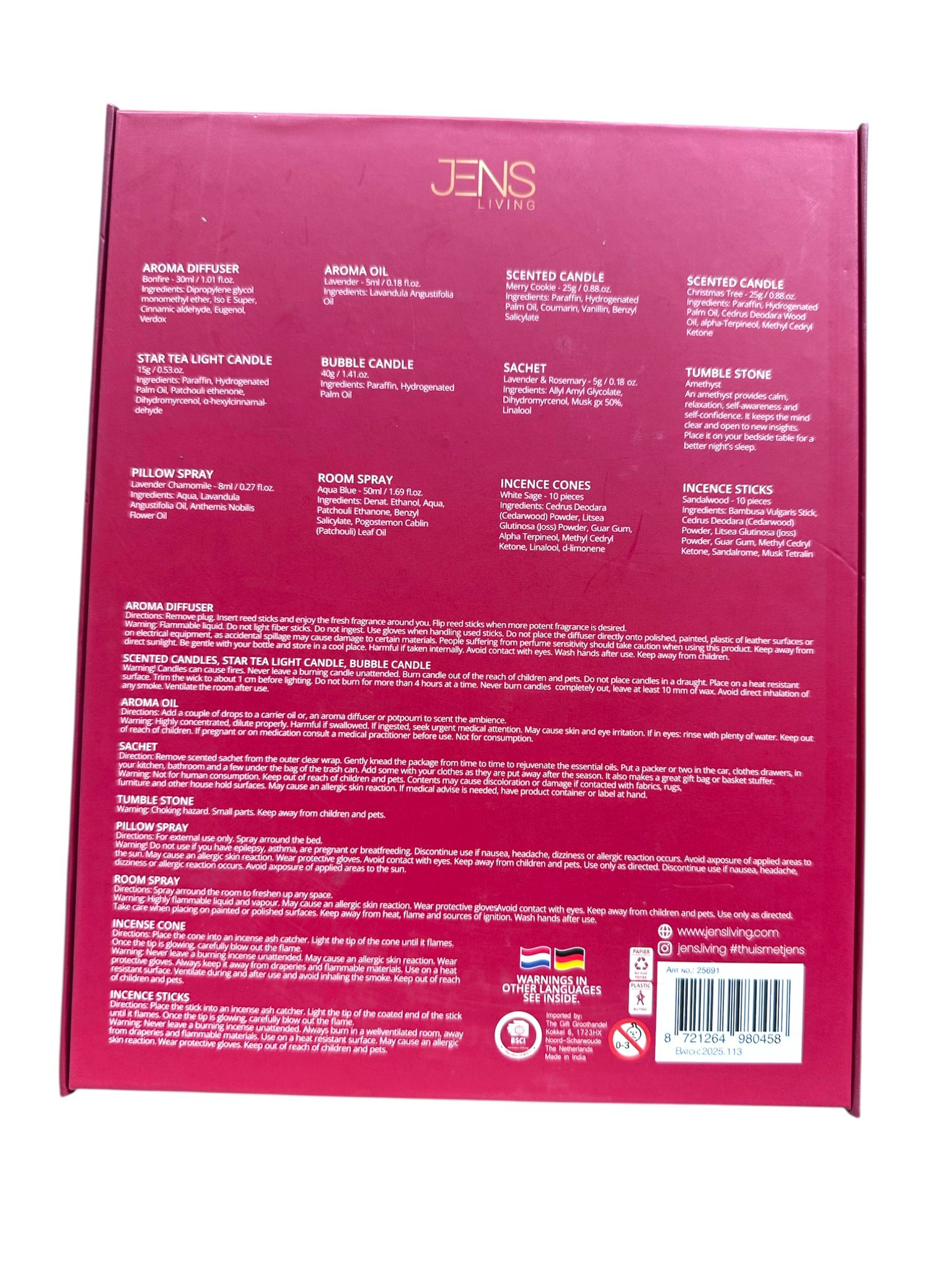 Tel af naar de mooiste tijd van het jaar met deze betoverende adventskalender. Achter elk van de 12 vakjes schuilt een heerlijk cadeautje dat je zintuigen prikkelt en je elke dag een moment van verwondering en ontspanning bezorgt. Van fijne geuren die direct een warme kerstsfeer oproepen tot kleine verrassingen die je dagelijkse routine een vleugje luxe geven, elke dag voelt als een cadeautje voor jezelf.