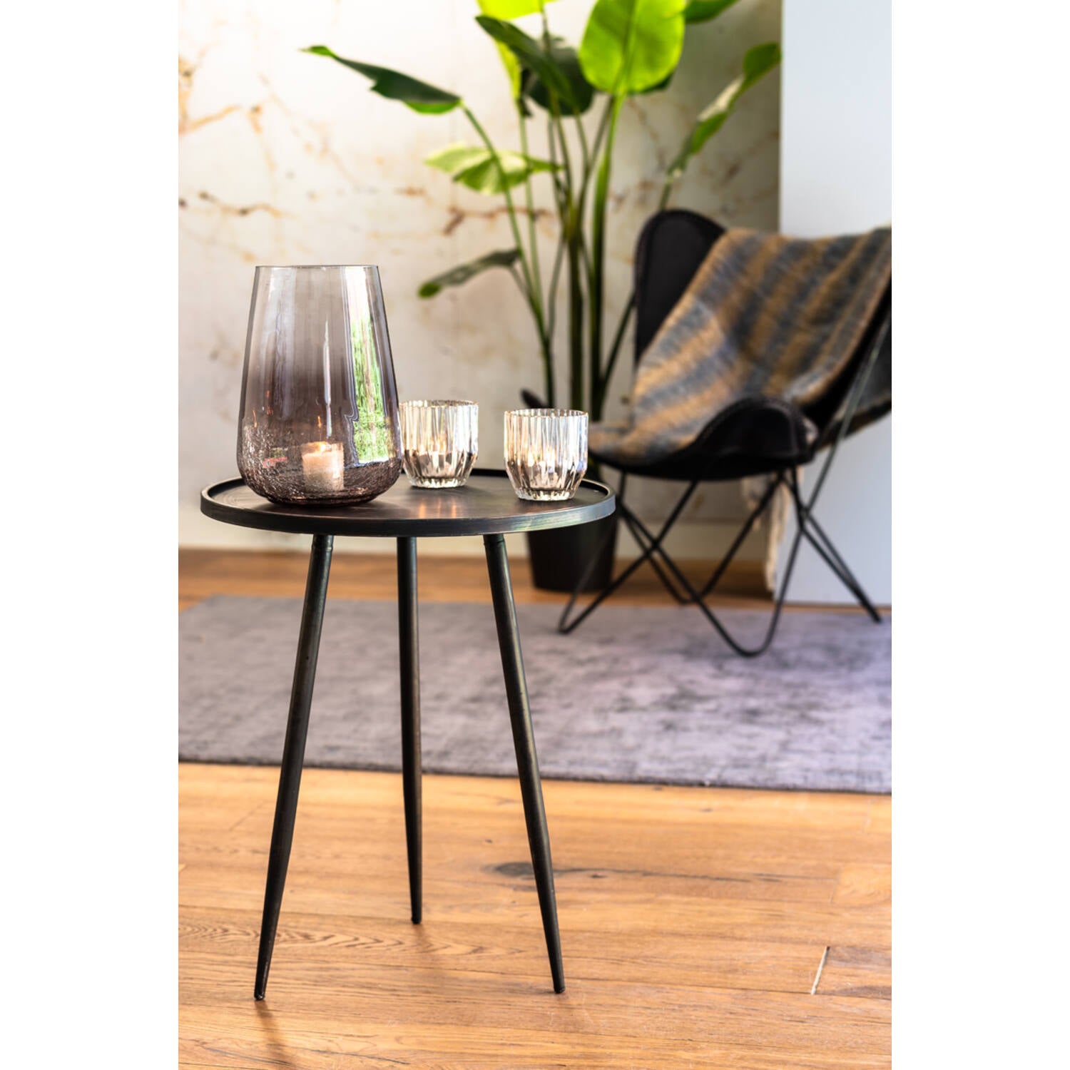 Met zijn formaat Ø39,5 x 50,5 cm is deze bijzettafel ideaal als praktische aanvulling naast de bank, naast een fauteuil of als stijlvol tafeltje in de slaapkamer. Gebruik hem voor een kop koffie, een mooi boek, een vaas met bloemen of een sfeerlamp. De zinkkleur geeft de tafel een verfijnde, tijdloze look en zorgt voor een rustige basis in je ruimte.