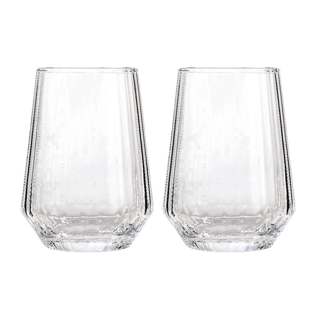 Geniet van je favoriete dranken in deze stijlvolle set van twee tumblers. Met een inhoud van 380 ml zijn deze glazen ideaal voor het serveren van cocktails, mixdrankjes of een fris glas water. De ruime inhoud en stevige vormgeving maken ze veelzijdig in gebruik, van een zomerse cocktail tot een klassiek drankje op ijs.