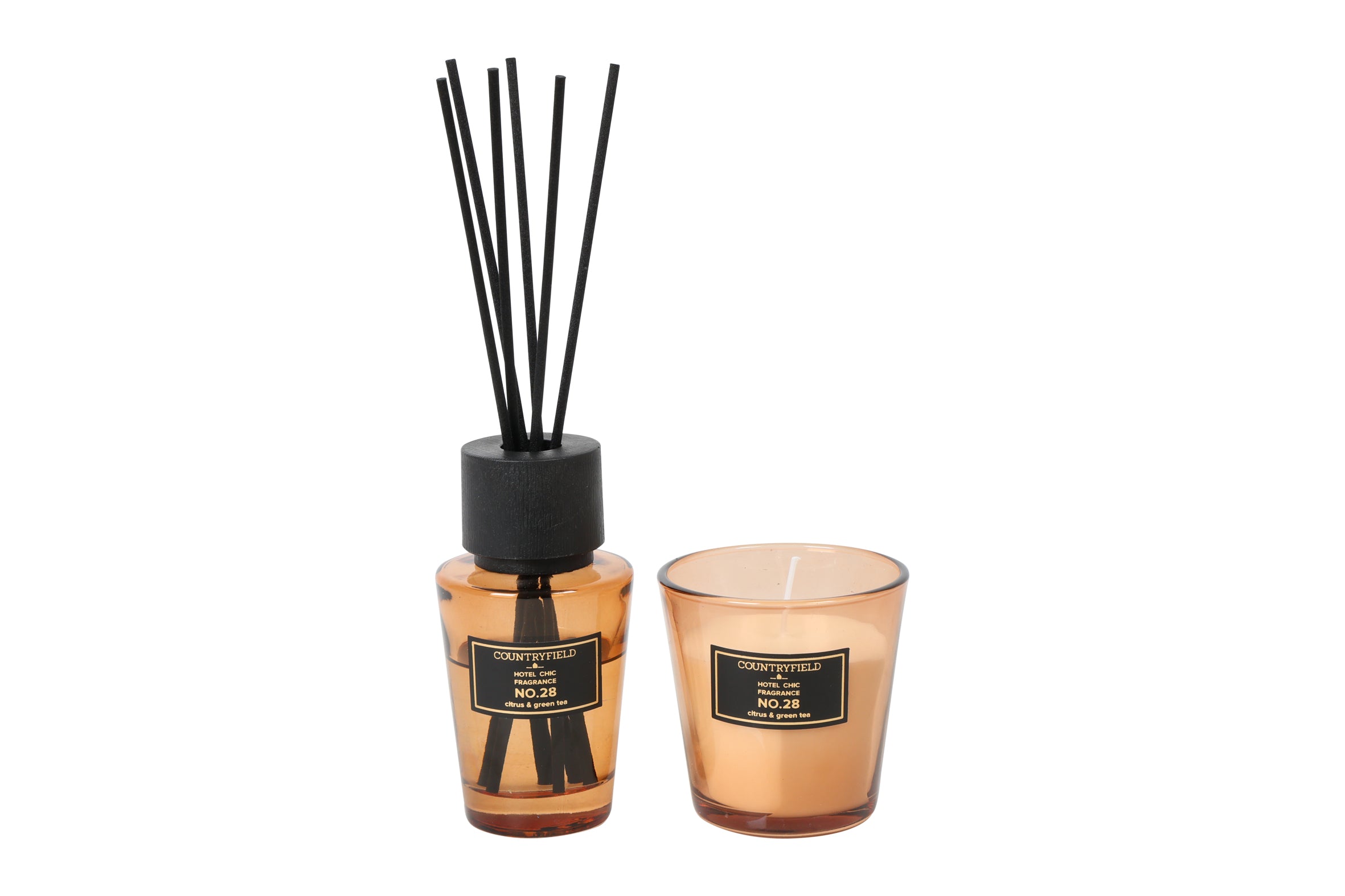 Deze stijlvolle geurset bestaat uit een diffuser van 100 ml en een geurkaars. Samen zorgen ze voor een warme en luxe sfeer in huis. De verfijnde geur van citroen en groene thee geeft je interieur een frisse en ontspannende uitstraling.