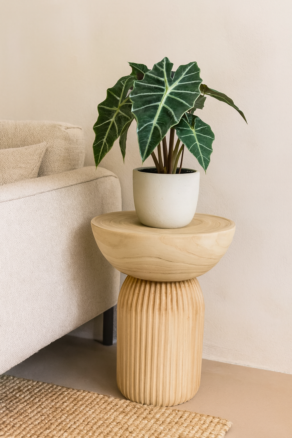 Breng een vleugje natuur in je interieur met de Houten kruk Lina. Deze stijlvolle bijzettafel is vervaardigd uit licht paulownia hout, dat niet alleen duurzaam is, maar ook een prachtige nerftekening vertoont. Het opvallende ontwerp, met een geribbelde voet en een gladde ronde top, zorgt voor een speels maar elegant silhouet dat elke ruimte kan verfraaien.