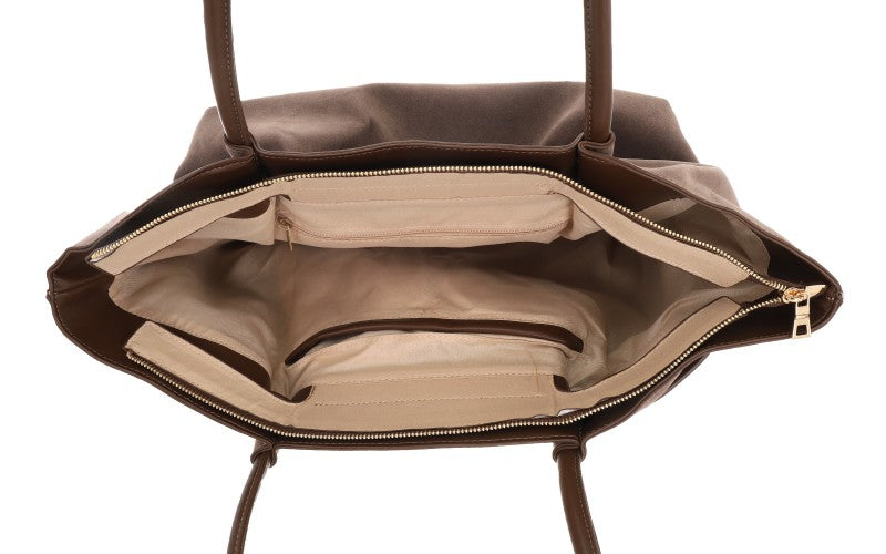Ben je op zoek naar een tas die overal bij past, maar net even wat warmer oogt dan zwart? De Cambridge shopper in 'Dark Camel' is een echte aanrader. De zachte suèdelook geeft de tas een luxe uitstraling, terwijl de kleur zorgt voor een rustig en natuurlijk geheel. Of je nu naar je werk gaat of een weekendje weg plant, deze tas maakt je outfit helemaal af.
