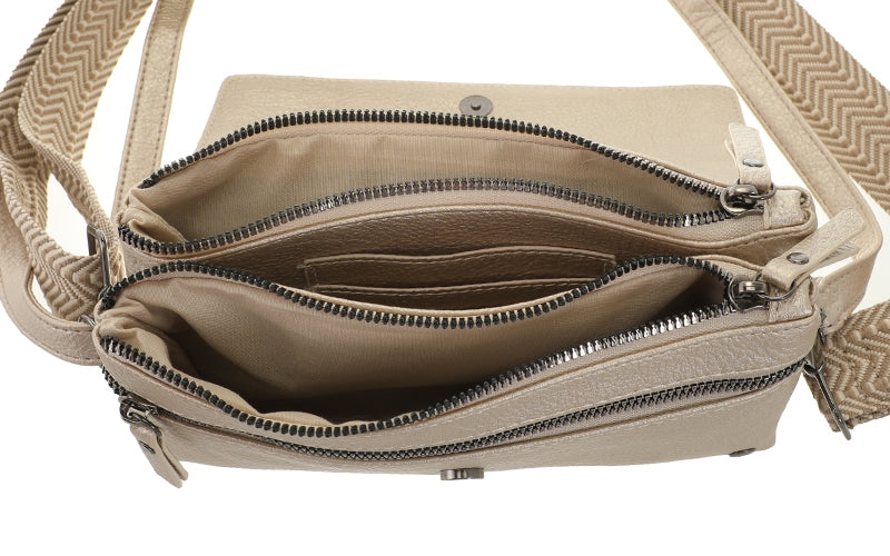 Wil je een tasje dat zowel praktisch als een tikkeltje glamoureus is? Bestel de San Martin in champagne en maak je look helemaal af.