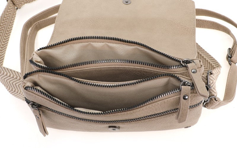 Ondanks het compacte formaat is de San Martin verrassend ruim. Door de twee aparte ritsvakken kun je je telefoon, pasjes en make-up netjes gescheiden houden. Aan de voorkant zit een extra vakje onder de flap, die veilig sluit met een magneet. Zo hoef je nooit lang te zoeken naar je belangrijke spullen en zit alles goed opgeborgen.
