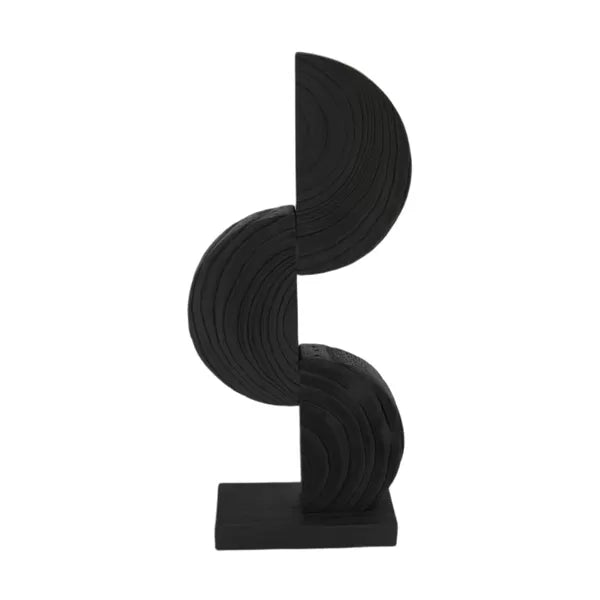 Ontdek de elegante charme van ons Ornament halve cirkel groot zwart, een prachtig decoratief stuk dat je interieur naar een hoger niveau tilt. Dit unieke ornament is vervaardigd uit hoogwaardig hout en combineert stijl met originaliteit. Het opvallende ontwerp, met zijn kunstig gestapelde halve cirkels, zorgt voor een boeiende en hedendaagse uitstraling die perfect past in elke moderne setting.