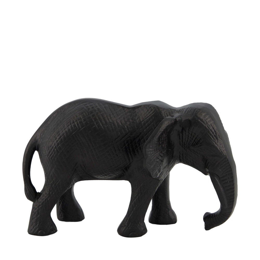 Met een afmeting van 20x12x12 cm is dit ornament compact maar opvallend genoeg om karakter toe te voegen aan een dressoir, wandplank of salontafel. De subtiele details in de afwerking benadrukken de elegante vorm van de olifant en geven het geheel een stijlvolle uitstraling.
