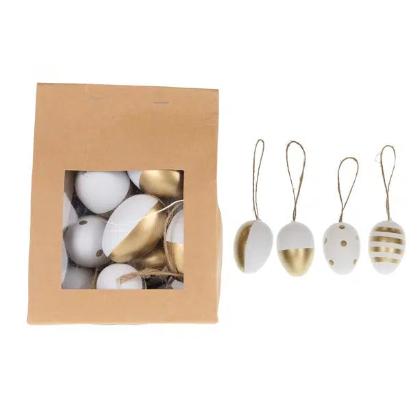 Wat deze paasei hangers uniek maakt in vergelijking met andere decoraties op de markt, is de combinatie van stijl en kwaliteit. De gouden en witte kleuren voegen een vleugje verfijning toe aan je paasdecoraties, waardoor ze zowel feestelijk als chic zijn.