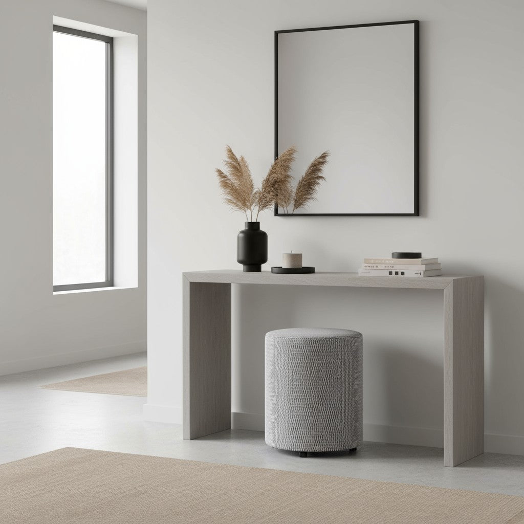 Poef Finn in grijs weave combineert modern design met een tijdloze uitstraling. De subtiele geweven stof in verschillende grijstinten geeft deze poef een verfijnde structuur en een speels patroon dat moeiteloos past bij elk interieur. De combinatie van licht en donker grijs zorgt voor diepte en maakt Finn een stijlvolle blikvanger zonder te overheersen.