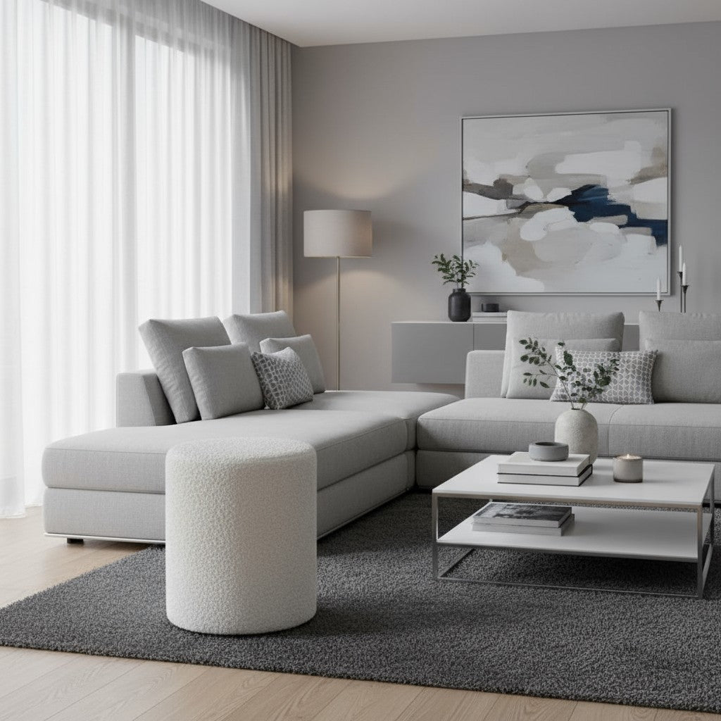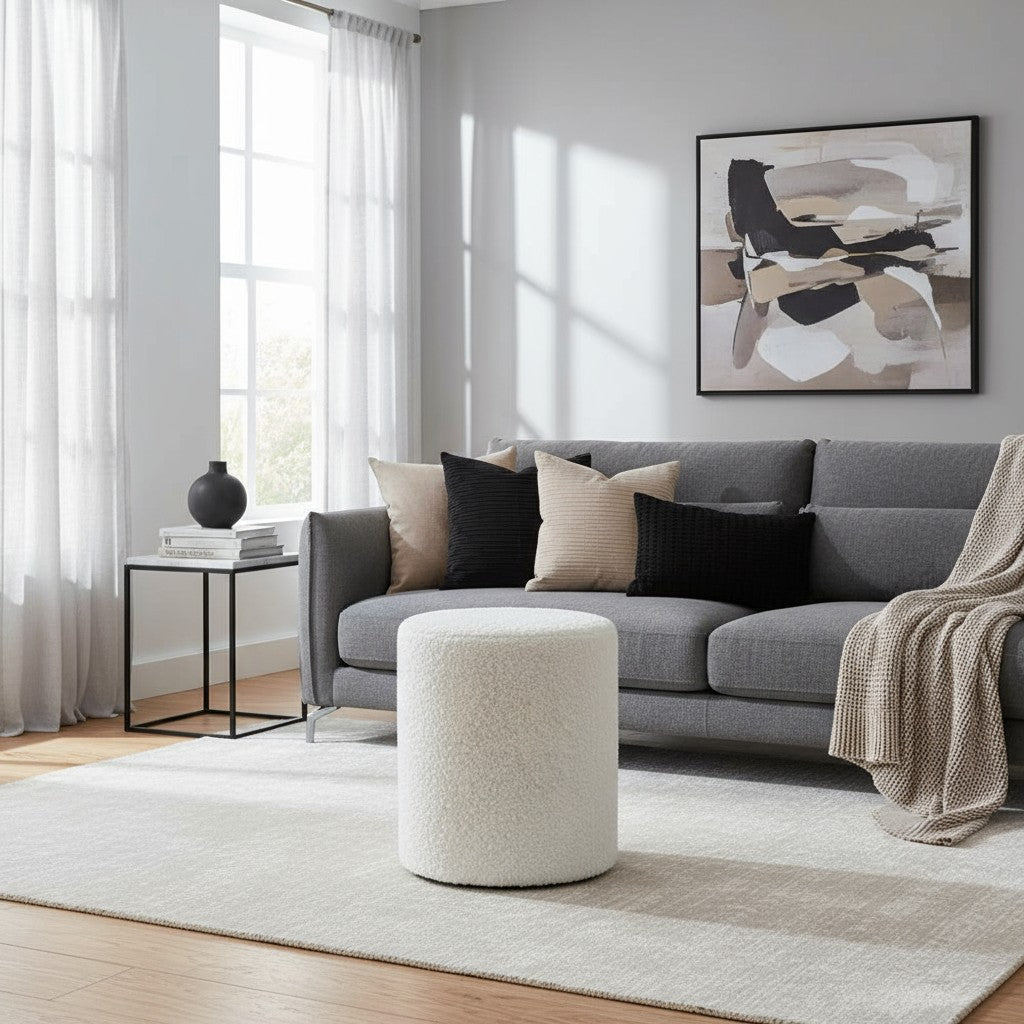 Poef Noa in offwhite is tijdloos, stijlvol en heerlijk zacht, een perfecte toevoeging aan een rustig en sfeervol interieur.