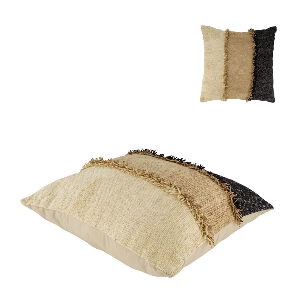 Geef je interieur een warme en natuurlijke uitstraling met het Sierkussen Bohemian. Dit kussen van 45x45 cm is gemaakt van gerecycled katoen en combineert drie banen in beige, bruin en zwart. De speelse franjes zorgen voor een nonchalante, boho look die meteen sfeer brengt in huis.