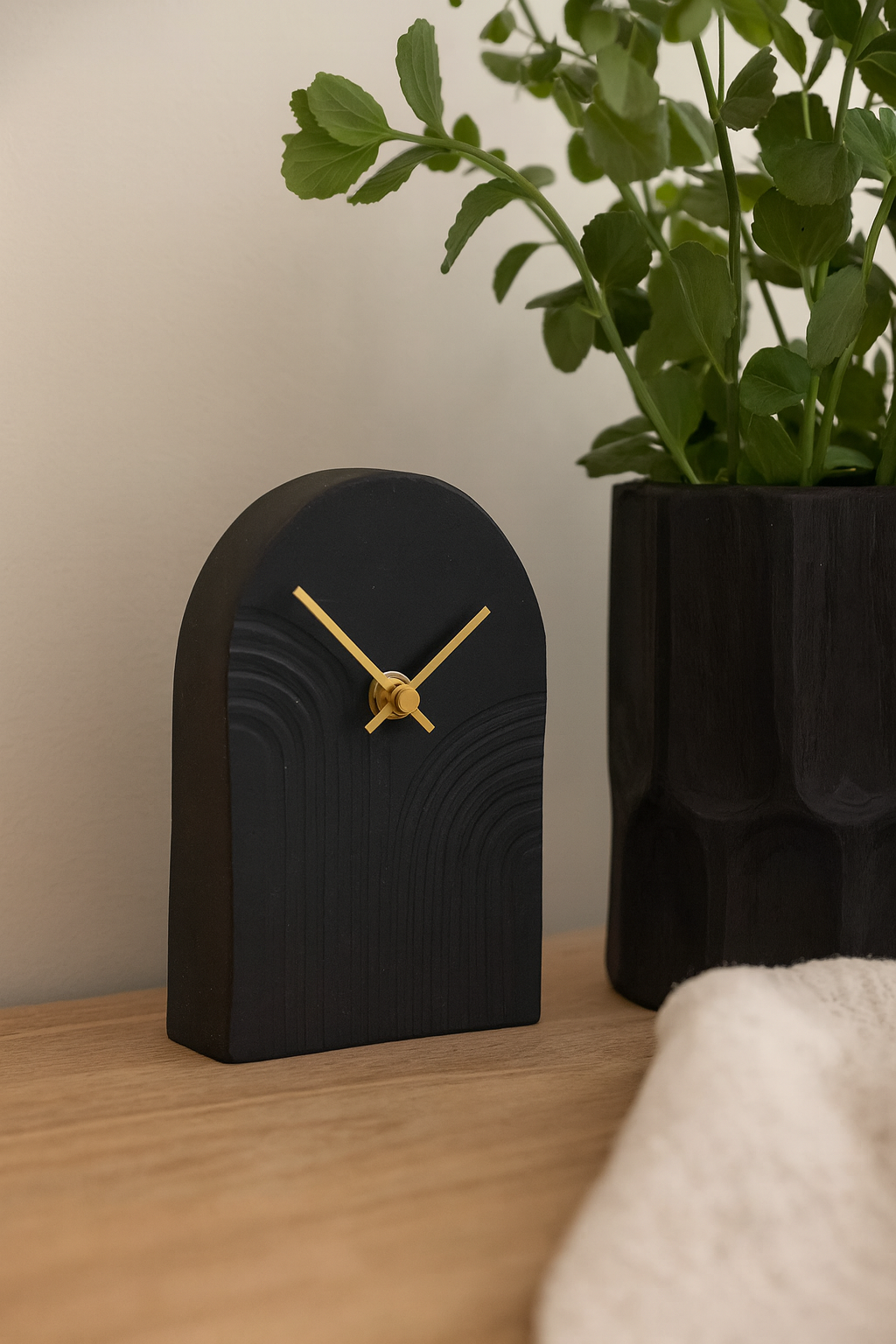 De Tafelklok Arco zwart groot is zowel functioneel als decoratief en geeft je interieur een stijlvol en eigentijds accent.