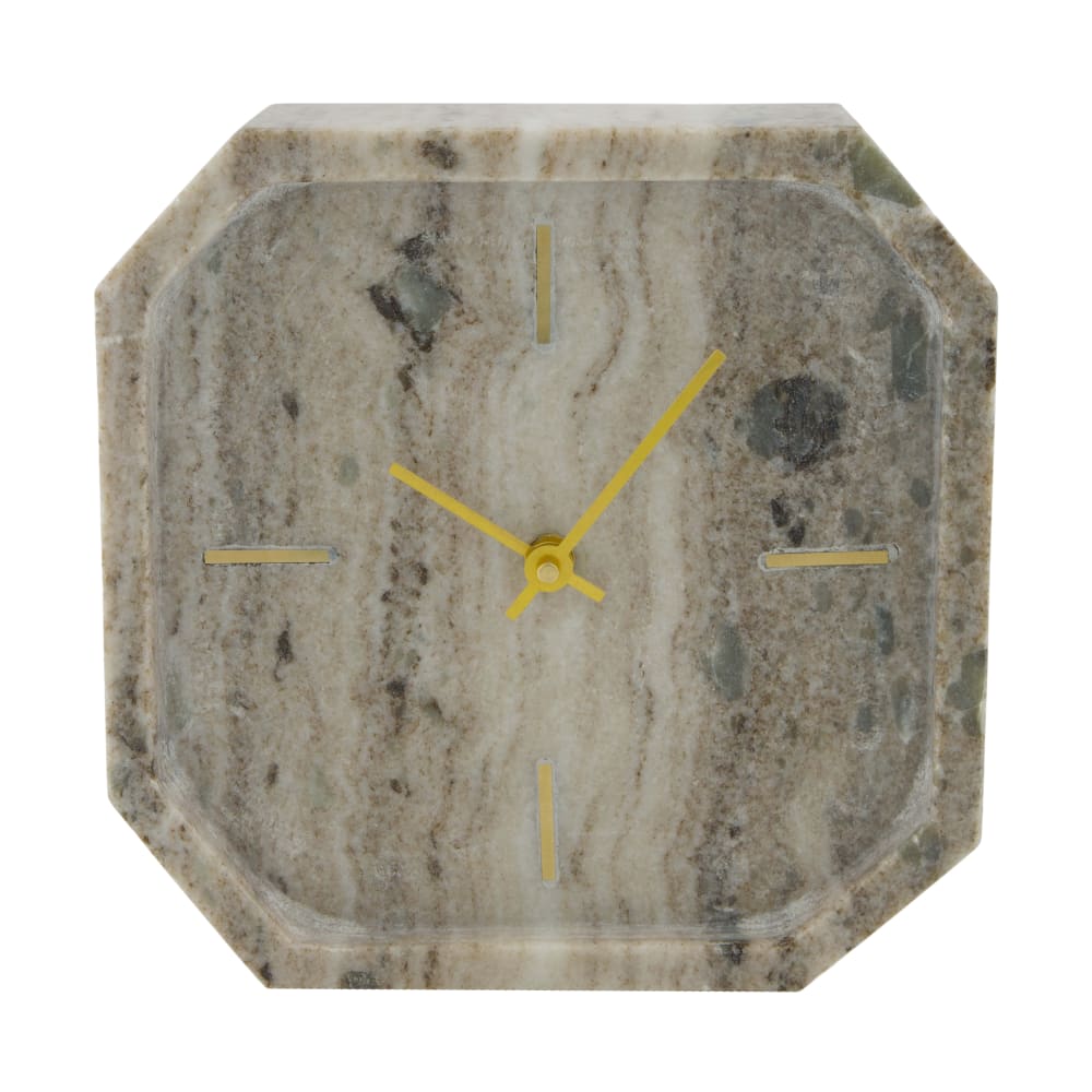 De Tafelklok Marmora brengt luxe en elegantie in huis met zijn prachtige marmerlook. Gemaakt van keramiek met een natuurlijke marmerafwerking, waardoor iedere klok uniek is in tekening en uitstraling. De goudkleurige wijzers en uurmarkeringen zorgen voor een stijlvol contrast en maken deze klok een echte eyecatcher.
