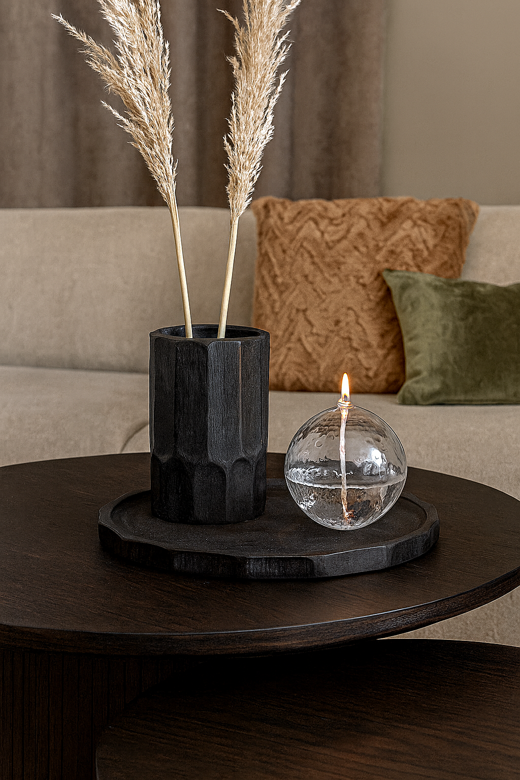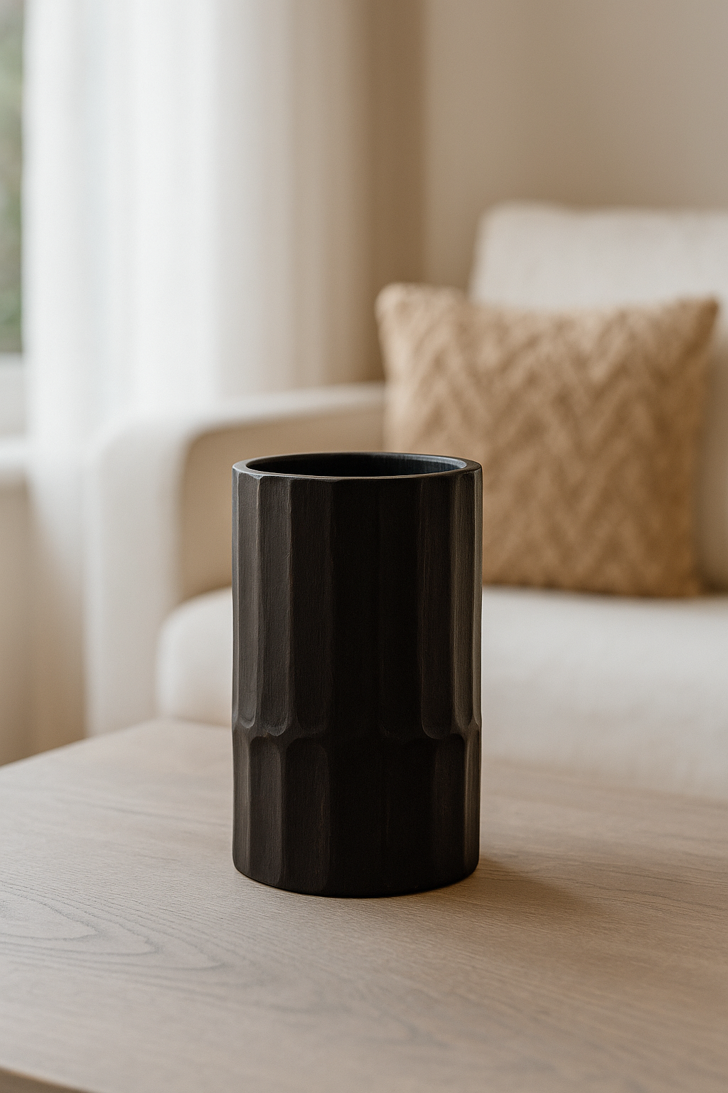 De Vaas Nubo is een stijlvol en natuurlijk woonaccessoire dat meteen in het oog springt. Gemaakt van licht maar stevig paulownia hout en afgewerkt in een diepe zwarte tint, combineert deze vaas eenvoud met karakter. Het subtiel gesneden lijnenspel geeft het design een eigentijdse uitstraling en maakt dat elke vaas net dat beetje uniek is.