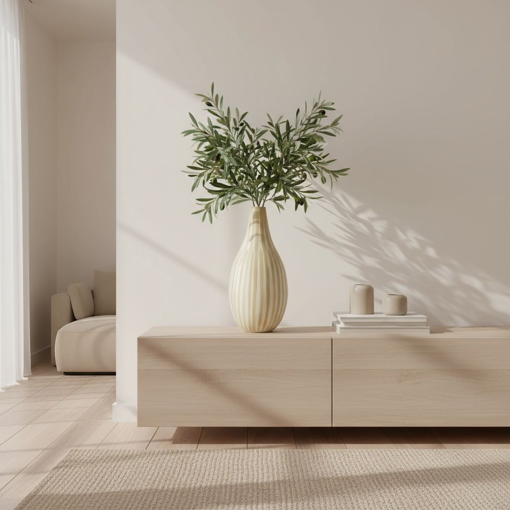 Vaas Solana is een elegante toevoeging aan ieder interieur Handgemaakt van natuurlijk bamboe en met een hoogte van 43 cm is deze vaas een stijlvolle blikvanger op tafel dressoir of in een open kast De verticale strepen in zacht beige geven m een luchtige uitstraling die moeiteloos blendt met zowel een Scandinavisch als een boho interieur