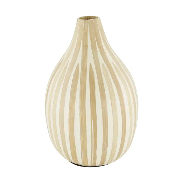 Vaas Solana Mini bewijst dat klein ook krachtig kan zijn Deze handgemaakte vaas van 100 FSC-gecertificeerd bamboe heeft een zachte natuurlijke uitstraling dankzij het fijne lijnenspel en de warme beige tinten Met een formaat van 18 x 28 cm is dit de perfecte vaas voor op een bijzettafel vensterbank of als subtiel accent in een open kastMooi met een enkele droogbloem maar ook prachtig om gewoon zo te laten staan Een stijlvolle keuze voor wie houdt van rust en puurheid in huis